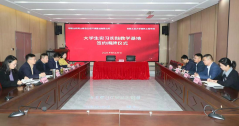 10月29日下午,我院与马鞍山市两山绿色生态环境建设有限公司共建“大学生实习实践教学基地”签约暨揭牌仪式隆重举行,就服务地方绿色建造产业发展开展深度合作。