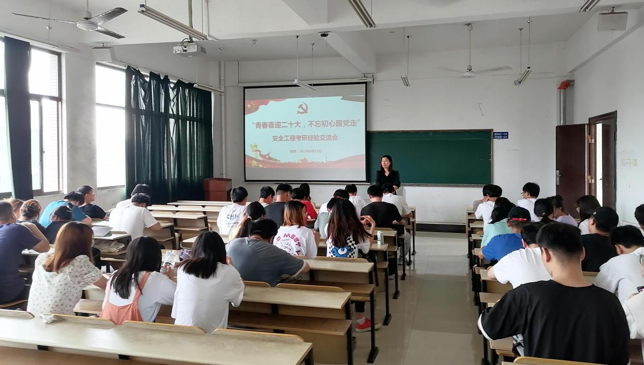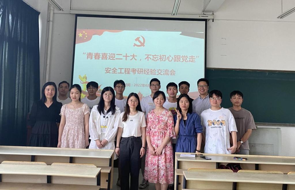 为更好地发挥毕业生党员在学风建设的模范带头作用,6月13日下午,安全系教工党支部在建北503开展以“青春喜迎二十大,不忘初心跟党走,考研经验交流”为主题的党日活动。支部书记刘影,系副主任冯俊军、黄琪嵩,部分教师党员、安全工程专业毕业生代表与大三学生参加了活动,活动由安全系主任林晓飞主持。